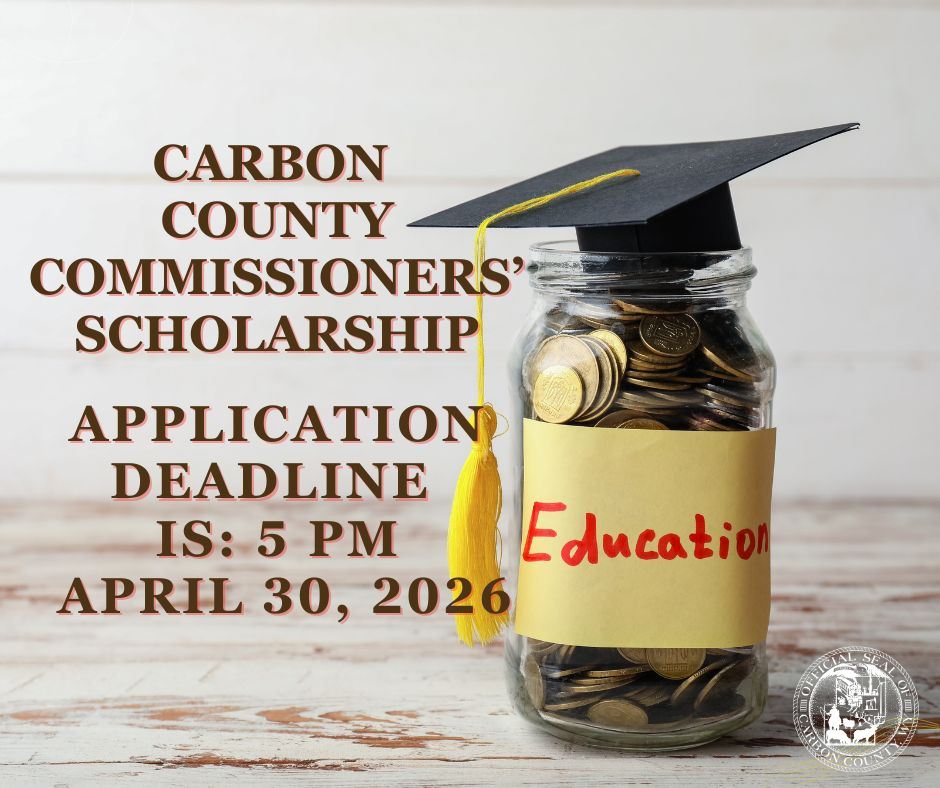 Application deadline for 2026 Carbon County Commissioners’ Scholarships is 5:00 p.m. April 30, 2026. Scholarships must be used at Wyoming schools. For more information click here, call 307-328-2668 or e-mail scholarships@carboncountywy.gov